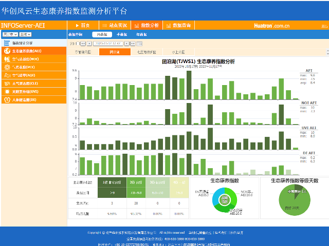 目前,濕地生態(tài)氣象觀測站已將采集到的氣象數(shù)據(jù)實時傳輸至生態(tài)康養(yǎng)指數(shù)監(jiān)測分析平臺,該平臺可提供九要素氣象數(shù)據(jù)以及生態(tài)康養(yǎng)、負氧離子、紫外線、舒適度等氣象指數(shù),為精準掌握候鳥棲息、遷徙分布動態(tài)提供支撐。