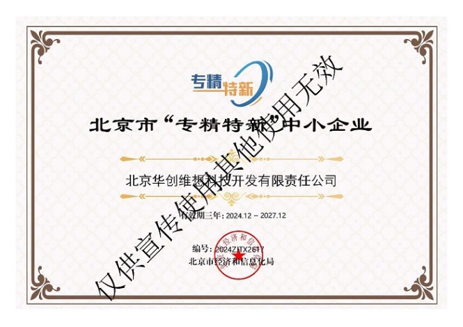 喜報—華創(chuàng)維想獲得北京市“專精特新”中小企業(yè)證書